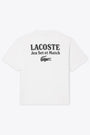 T-shirt bianca in cotone con slogan al petto e sul retro